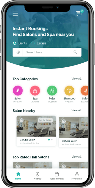 Searching Users can select or search their salon based upon various filters like cost, proximity, types of services, and advancement.